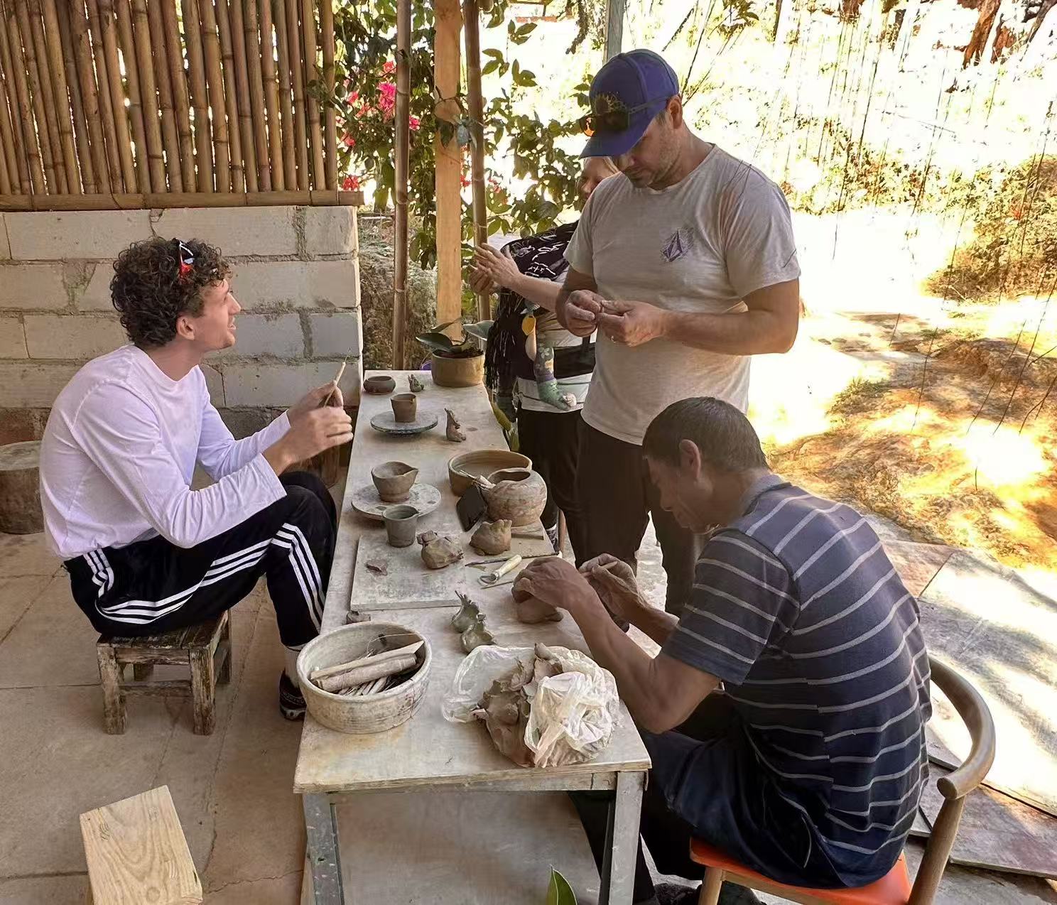 11:30 bring back all clay we fund from mountian backr to handcraft countyard , local artian will introuduce there family pottery making history show every piece of article they make , then tell all details of how from raw clay fermented process to shaping and Glazing and buring at Kiln become a beauiful article.